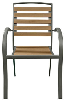 Корпус и ножки стула изготовлены из прочного алюминия, окрашенного электростатическим способом в стойкий к атмосферным воздействиям серый оттенок.