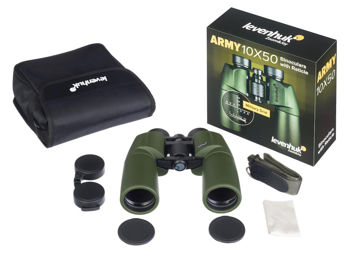 Стеклянная оптика модели Levenhuk Army 10x50 построена на Porro-призмах. Она выстраивает яркое контрастное изображение благодаря полному многослойному просветлению линз. Адаптировать оптику к особенностям зрения наблюдателя можно с помощью кольца настройки диоптрий на окуляре, наглазники выдвигаются и задвигаются. При желании можно с комфортом вести наблюдения не снимая очков – солнцезащитных или тактических. Для настройки резкости служит рельефный барабан центральной фокусировки – его удобно поворачивать даже рукой в перчатке.