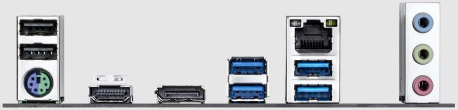 DisplayPort; HDMI 1.4b; LAN (Ethernet); PS/2 combo; USB 2.0; USB 3.2 Gen 1; USB 3.2 Gen 2;