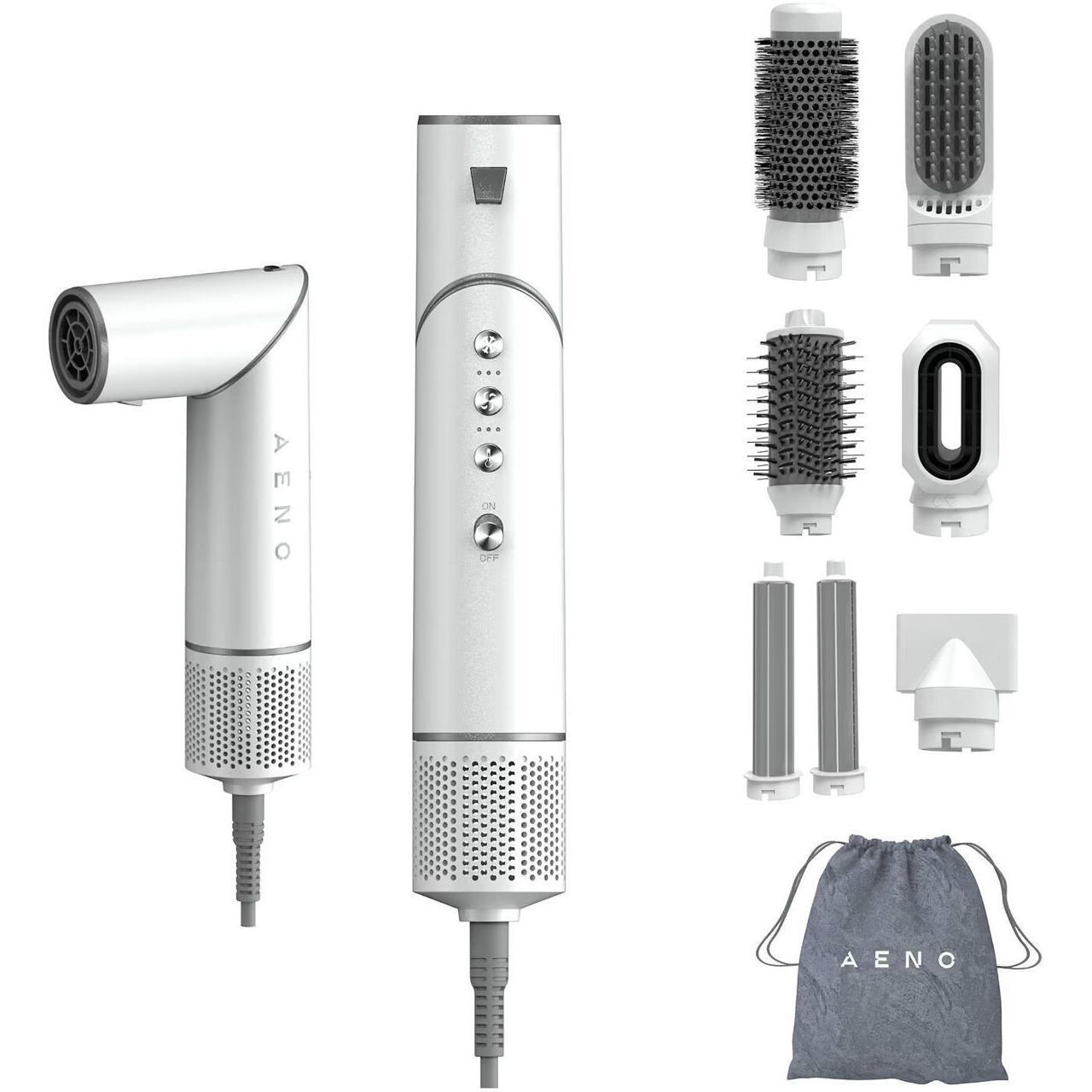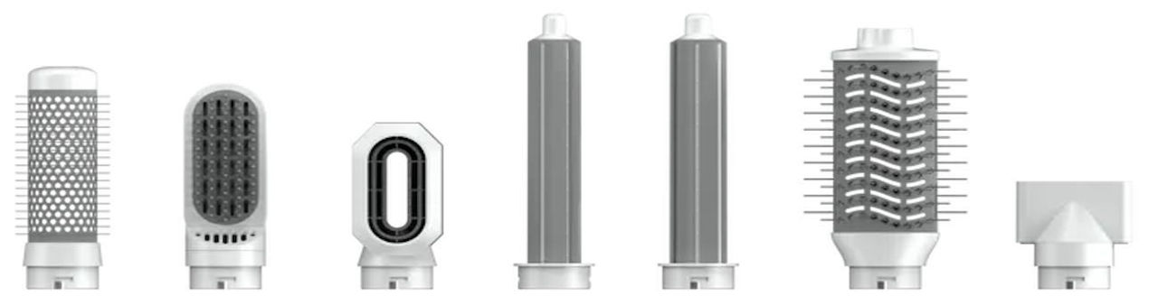 насадка для выравнивания, браш для объема, щетка для объема, 2 насадки для локонов разных диаметров, насадка для пре-стайлинга, концентратор/