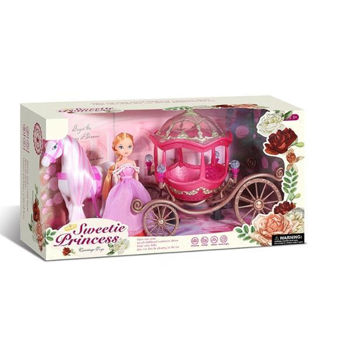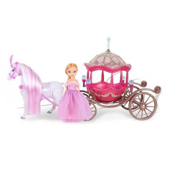 лошадь, карета, фигурка принцессы, упряжь, корона и декоративные аксессуары для кареты.