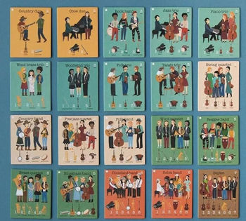 36 карт, 20 карточек с музыкальными группами, 4 жетона молчания, 24 фишки - координирующие жетоны