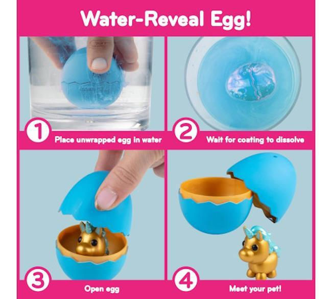 Двойная распаковка — и предвкушение нарастает! Разверните яйцо, затем погрузите его в воду, чтобы удалить внешнюю оболочку и увидеть один из вариантов дизайна яйца из игры.