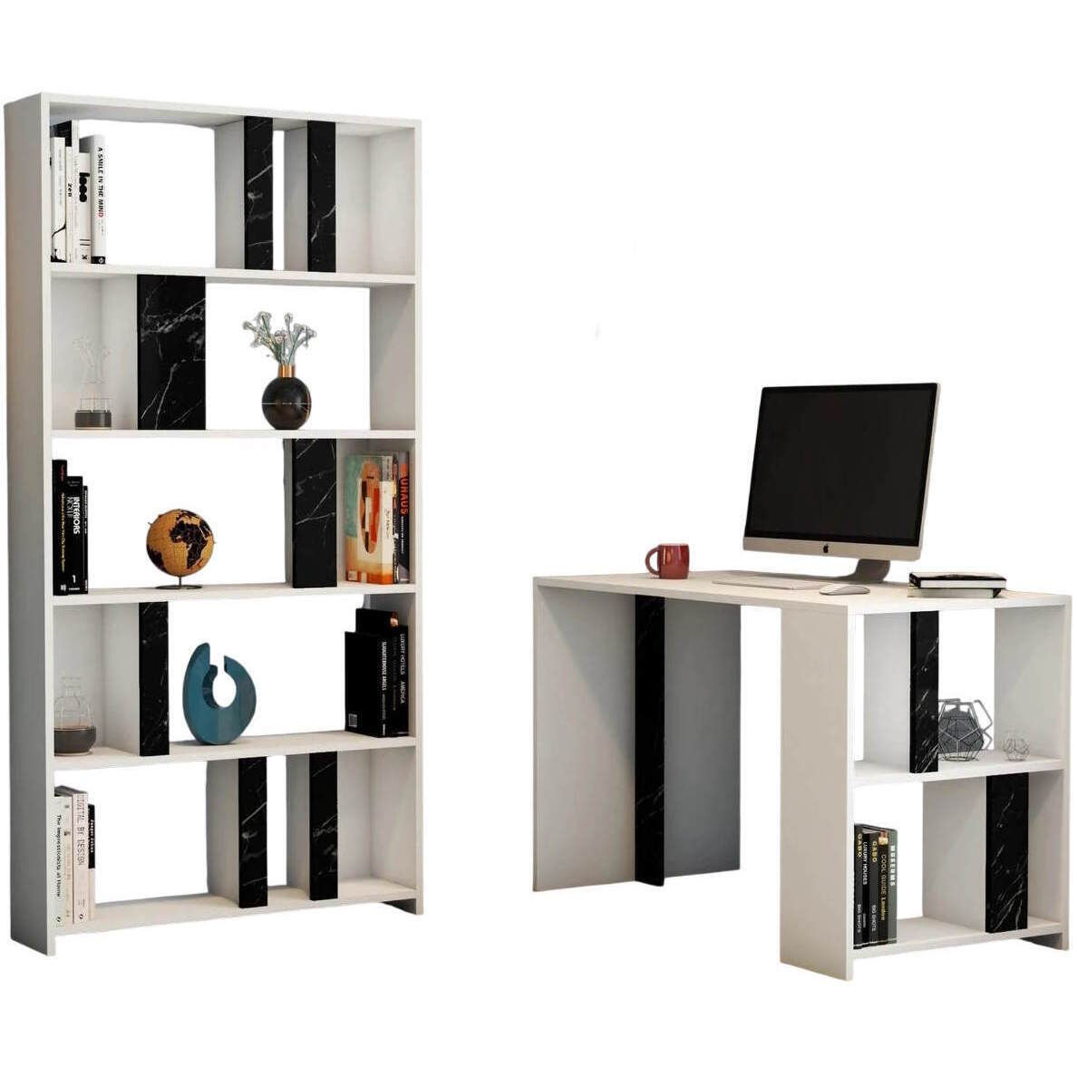 Офисный стол Trendy Lima, marmura alba, neagra, cu raft