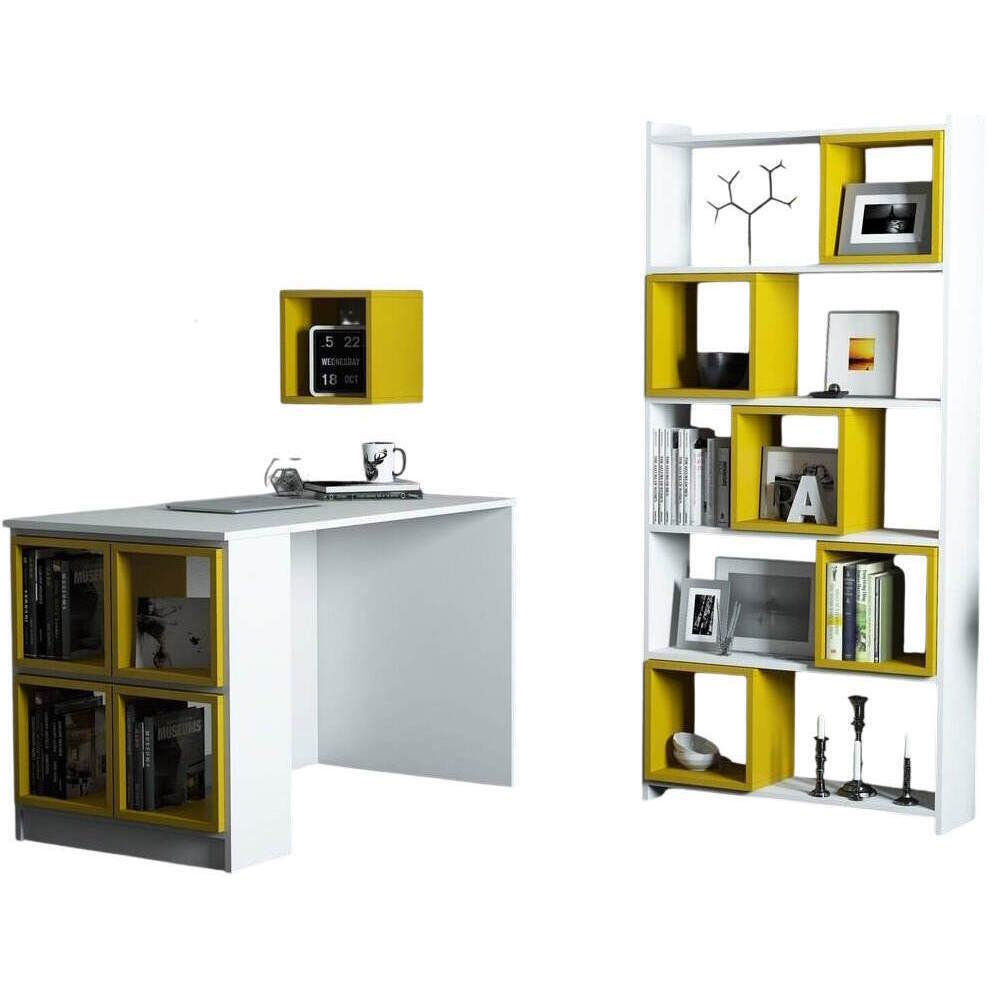 Офисный стол Trendy Cutie, alb, galben, cu raft